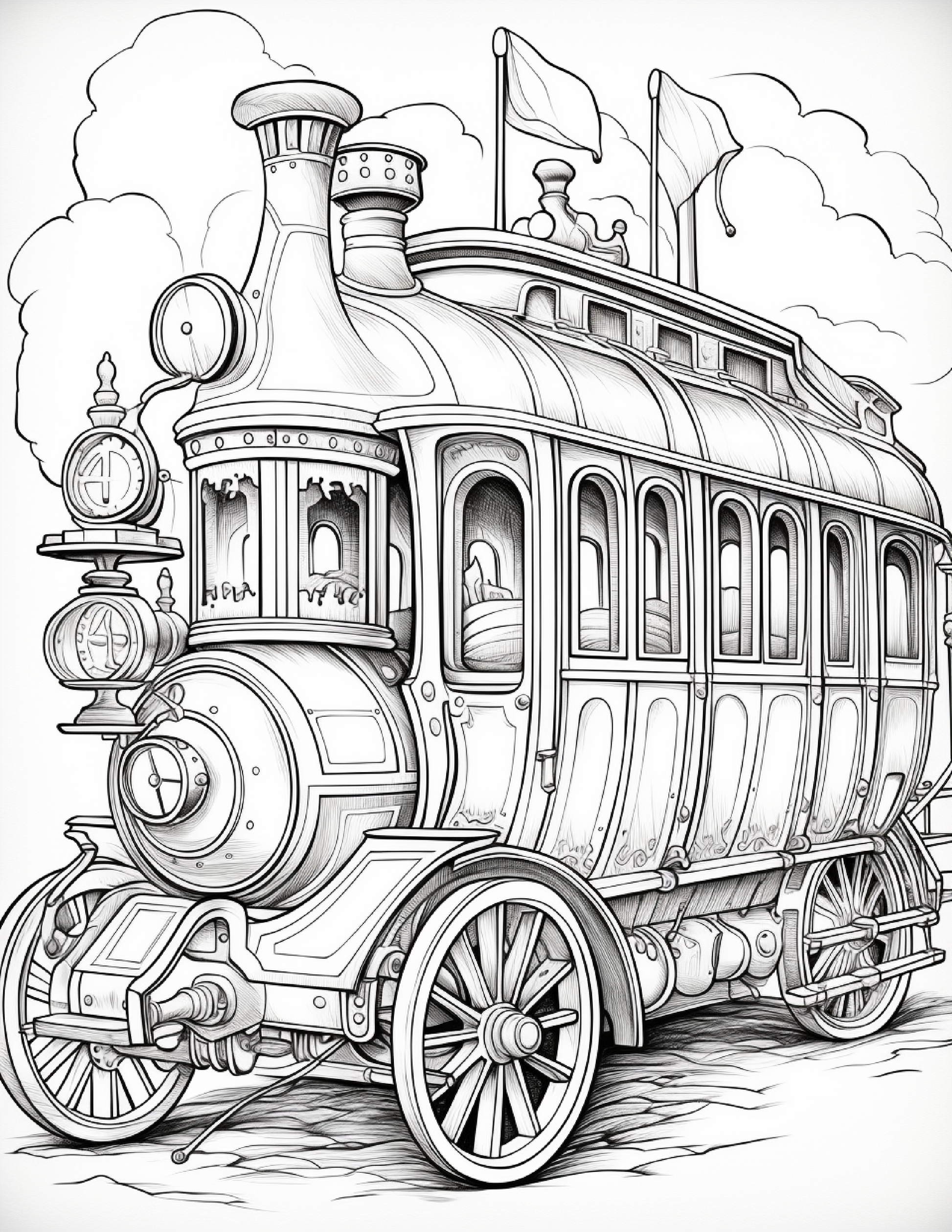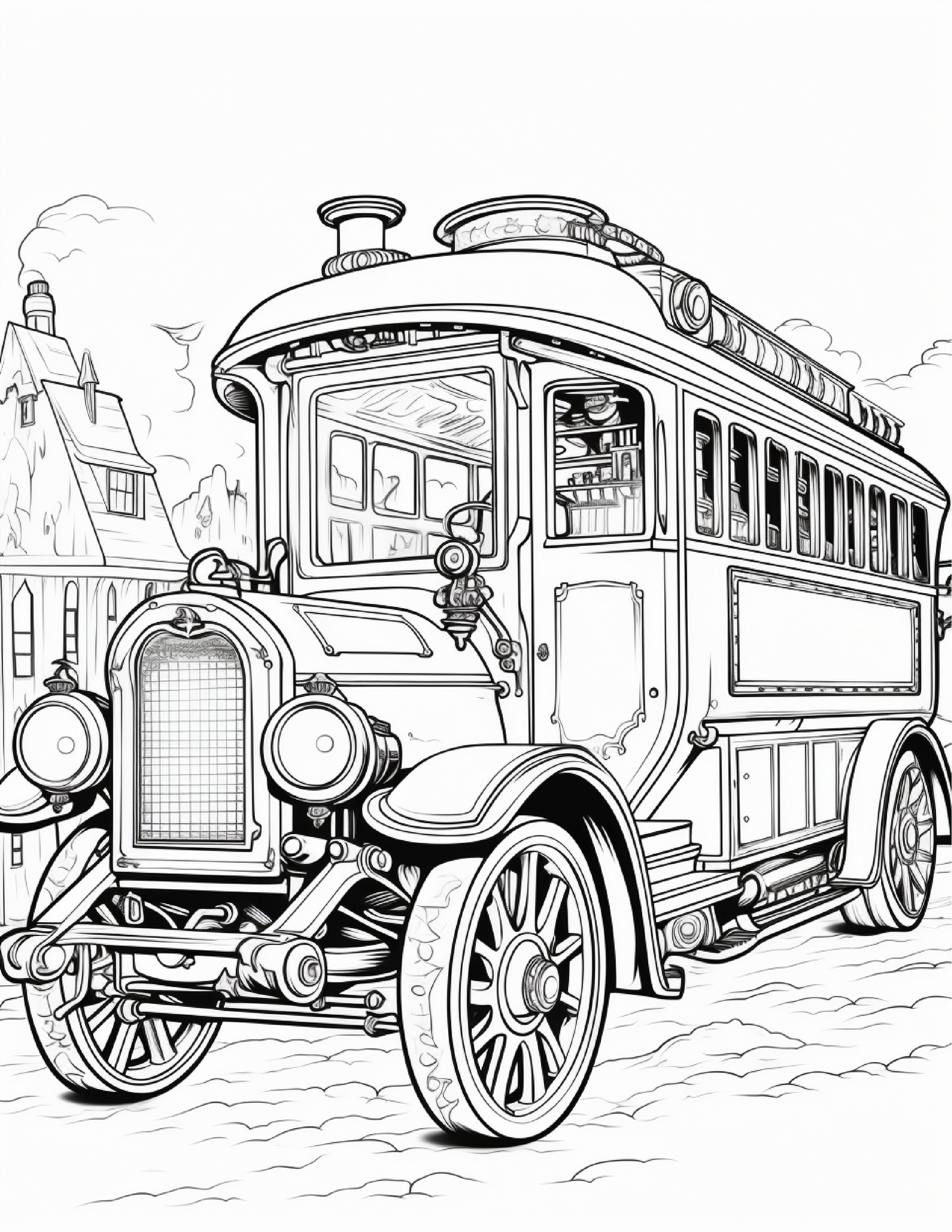 Step into a world where imagination meets machinery with this unique colouring book! Inside, you’ll find 100 original illustrations of fantastical steampunk buses—each bursting with gears, pipes, cogs, and intricate details inspired by the Victorian age of steam.