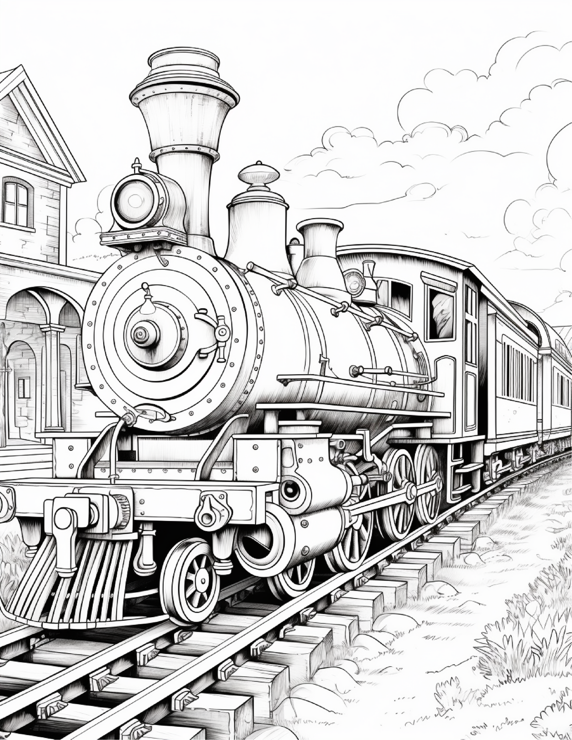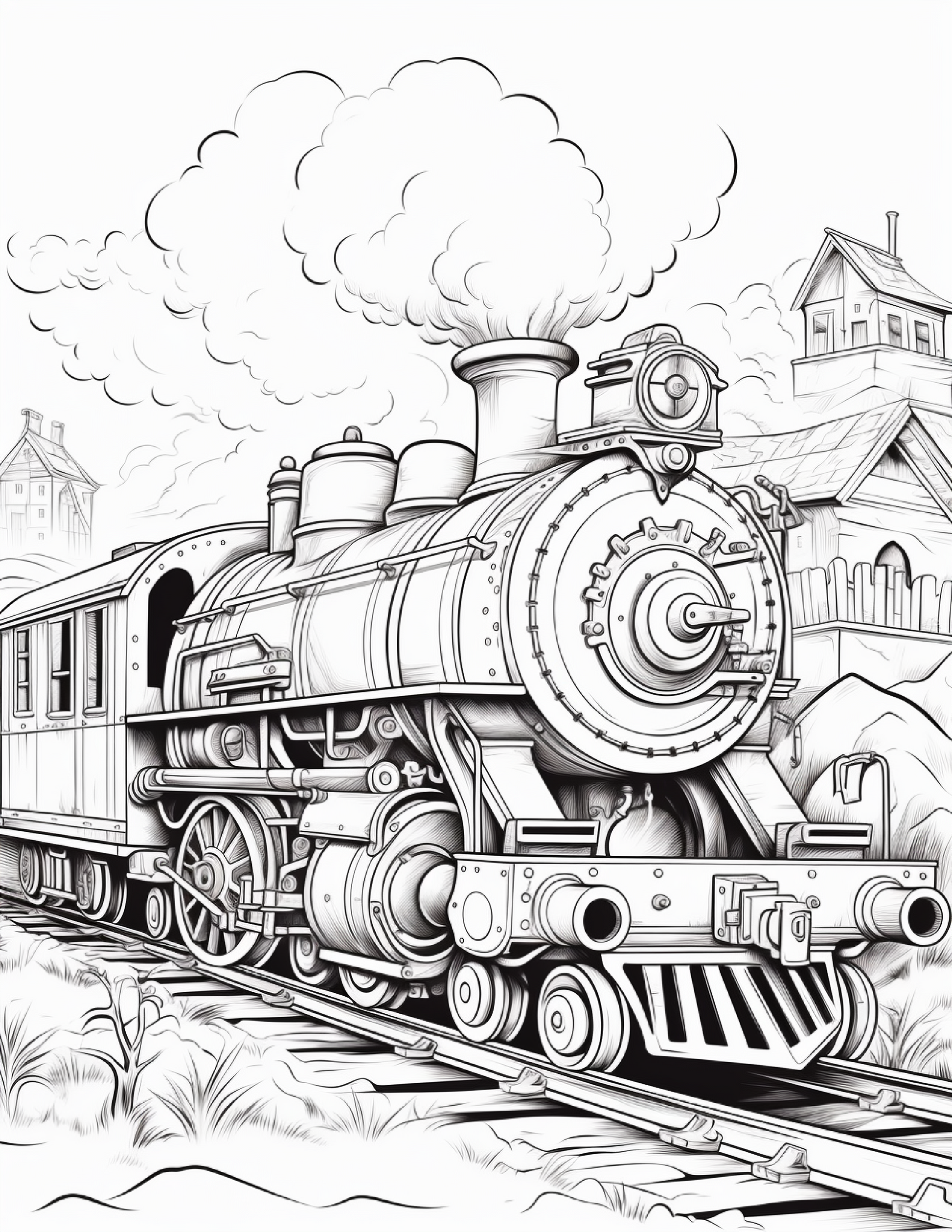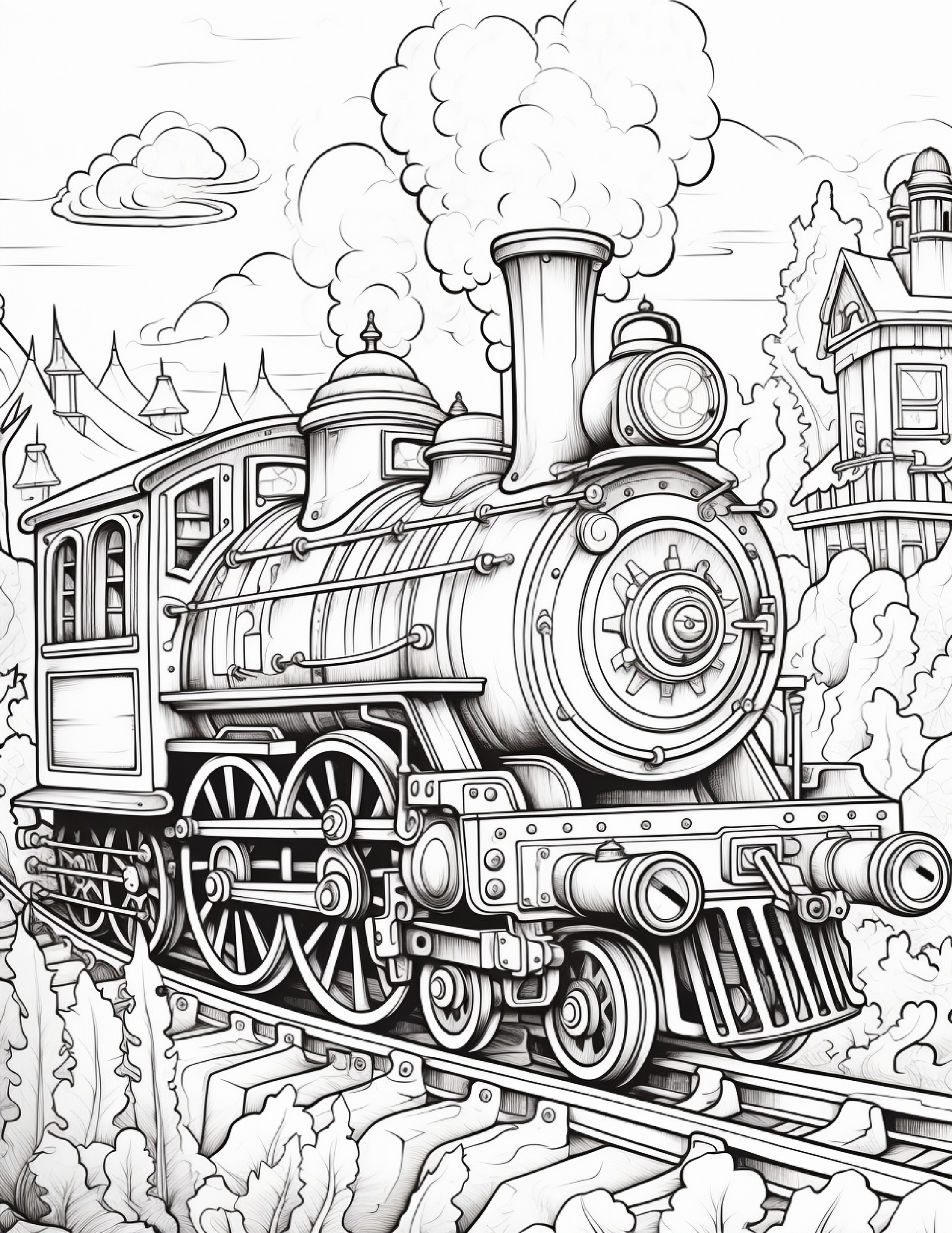 Perfect for children and adults alike, these colouring pages encourage creativity, focus, and relaxation. From puffing engines with oversized wheels to fantastical train carriages adorned with brass and steam-powered gadgets, every design invites you to explore a world of mechanical magic.