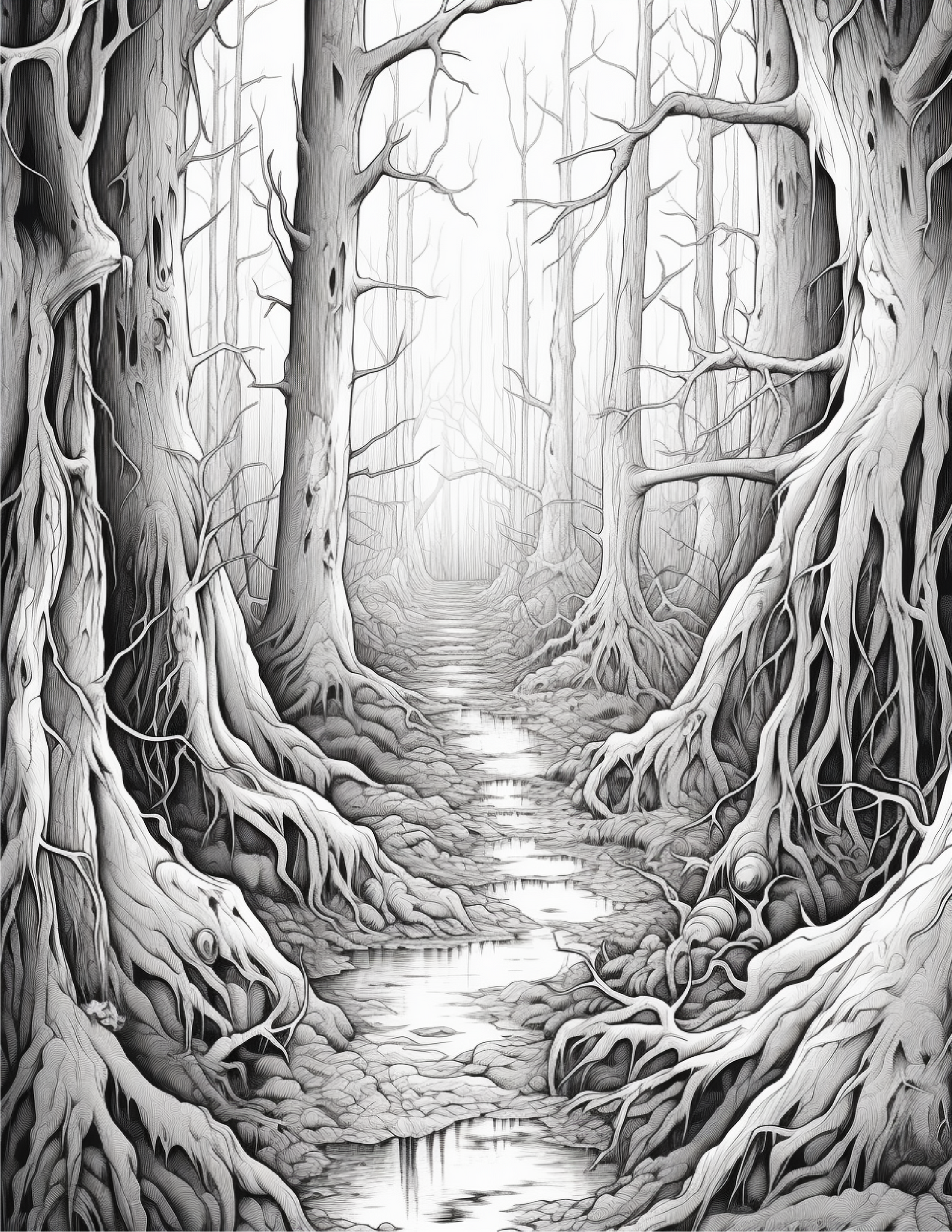 Inside, you’ll find a spellbinding variety of scenes: towering ancient trees with twisting roots, moonlit clearings shrouded in mist, castles hidden deep within the woods, and mysterious creatures lurking among tangled vines. From graceful owls and wolves to mystical fairies and enchanted ruins, every page offers a journey into a haunting yet beautiful world waiting to be brought to life with colour.