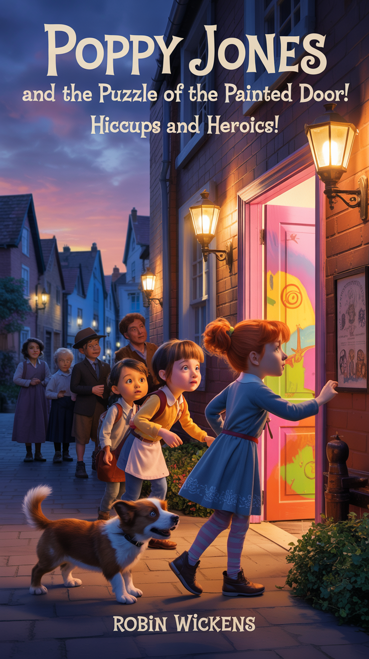 In the heart of Amberwood, something magical stirs. Overnight, a mysterious mural appears on the market square wall, filled with scenes that seem to show glimpses of the future. At its centre stands a glowing painted door—an invitation that Poppy Jones, her loyal dog Baxter, and her friends Ava and Thomas cannot ignore.
